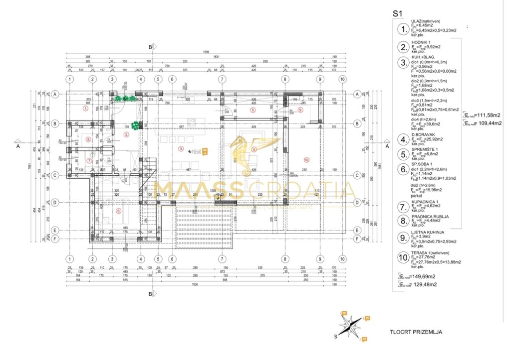 Villaens rummelige interiør omfatter hovedindgang, entre, vaskerum, spisestue, stue, køkken med udgang til terrasse med sommerkøkken samt soveværelser med en-suite badeværelser.