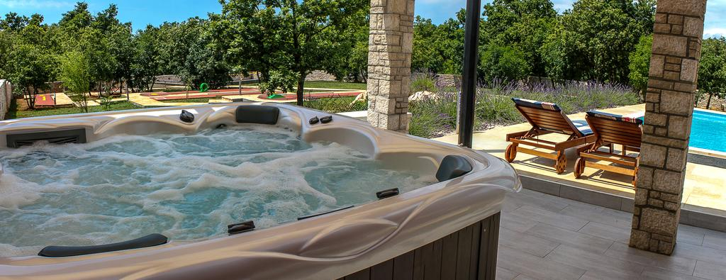 For dem, der søger yderligere udendørsaktiviteter, har huset en minigolfbane, en basketballbane, en legeplads, et spabad, en stor have og en behagelig udendørs pool!