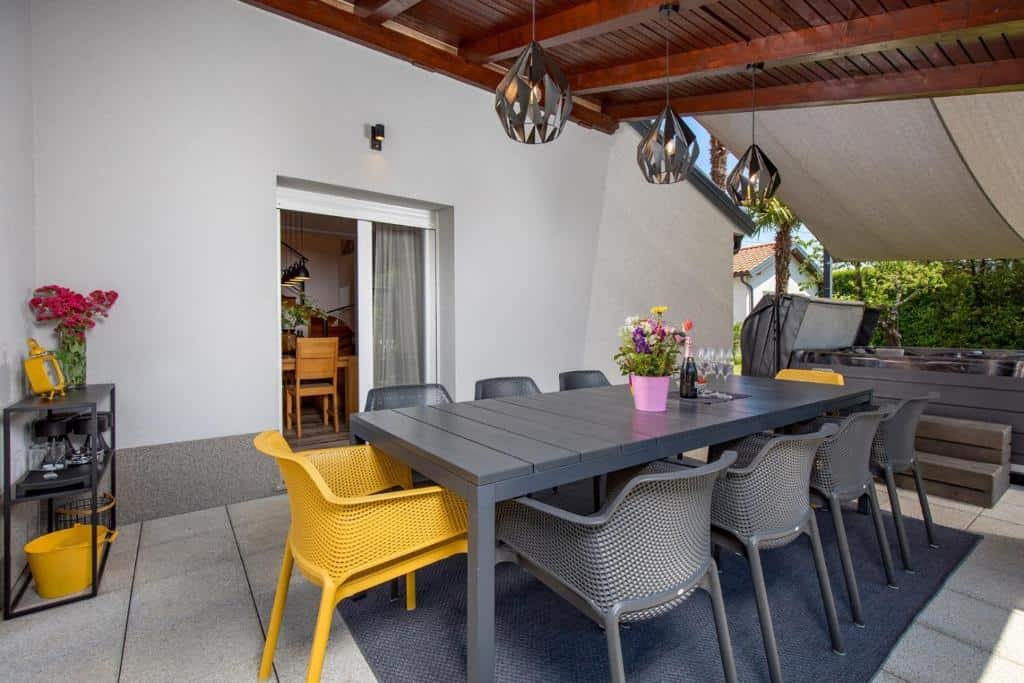 Huset er udstyret med moderne bekvemmeligheder såsom aircondition, sikkerhedskameraer og en terrasse, hvor du kan spise udendørs eller blot slappe af med en bog. Den velholdte have bidrager til ejendommens charme og giver et fredeligt tilflugtssted fra bylivets travlhed.