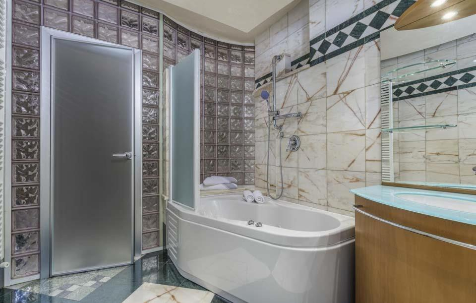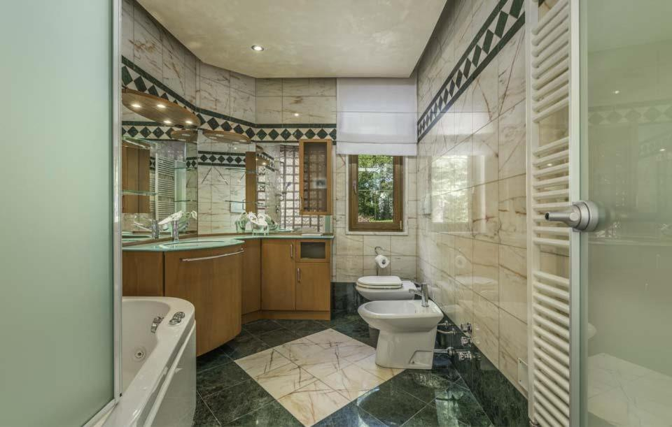 Dette smukke, interessant designede hus i traditionel stil ligger 3 km fra havet og tilbyder 400 m² boligareal fordelt på 2 etager: 5 soveværelser, 4 badeværelser samt en opholds- og spisestue.