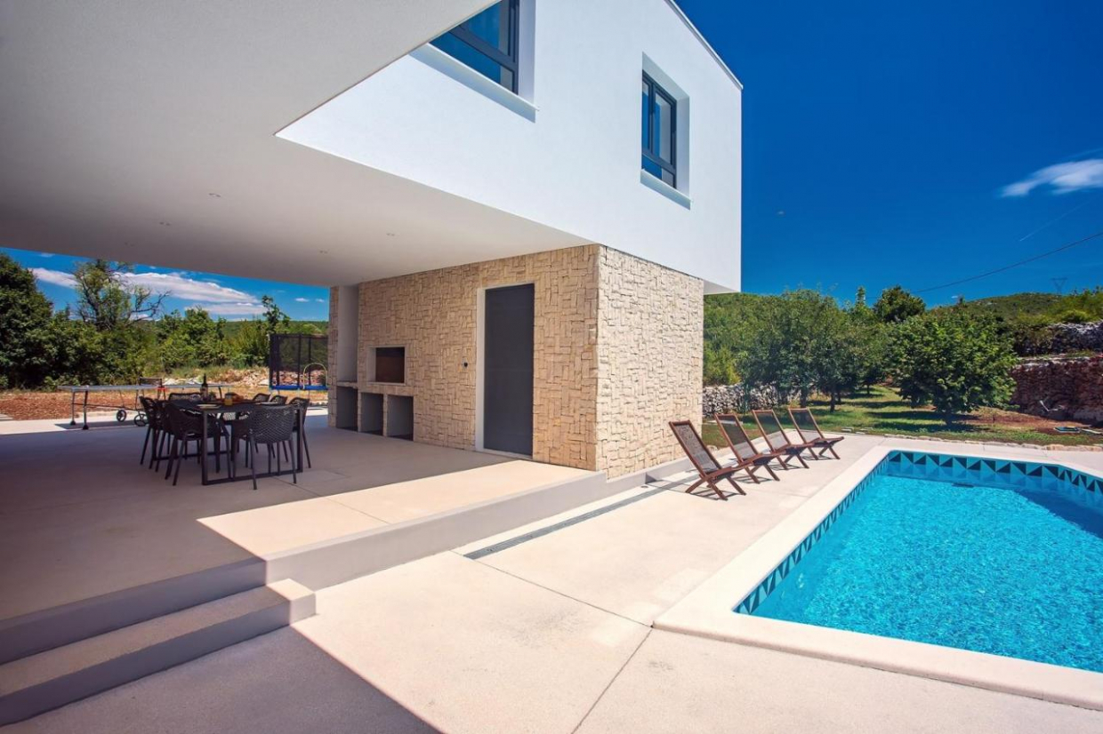 Det rummelige og rene interiør er møbleret med topmoderne møbler og apparater, hvilket gør denne villa elegant, luksuriøs og sofistikeret.