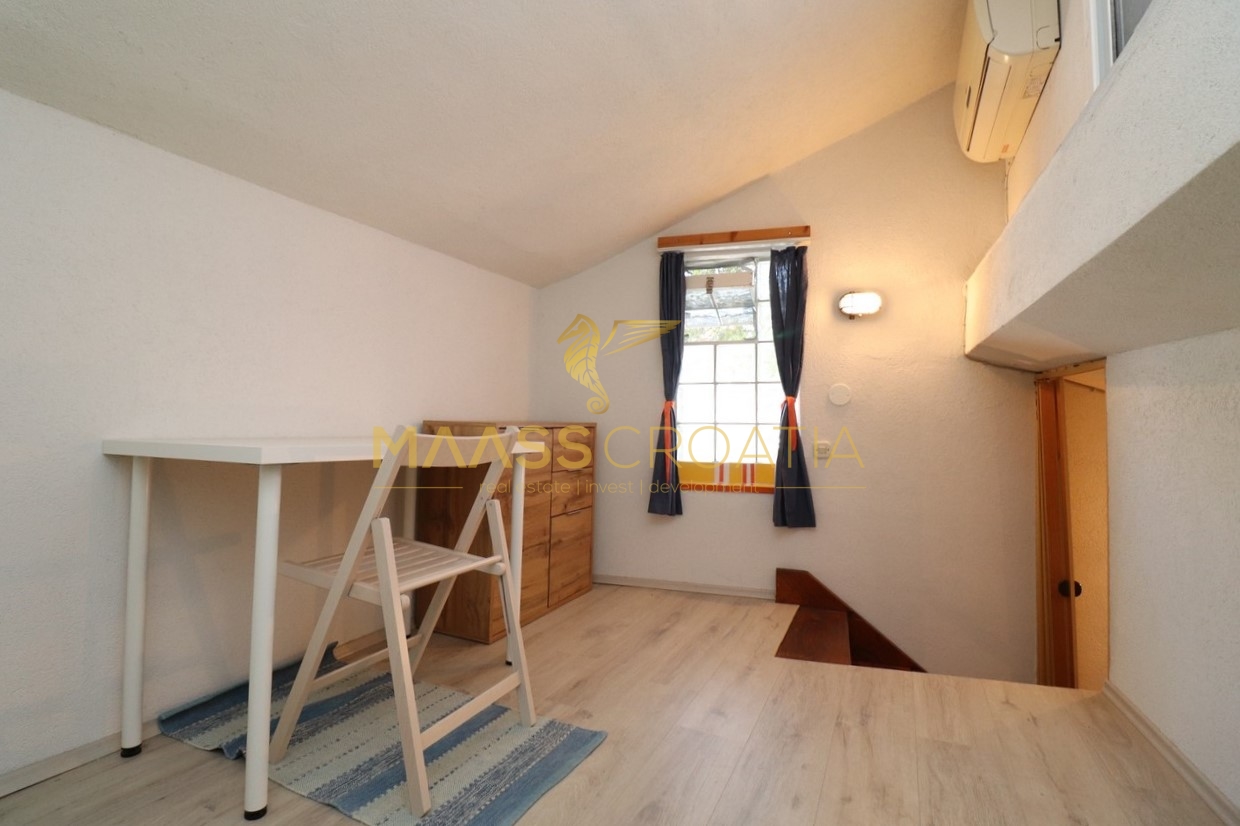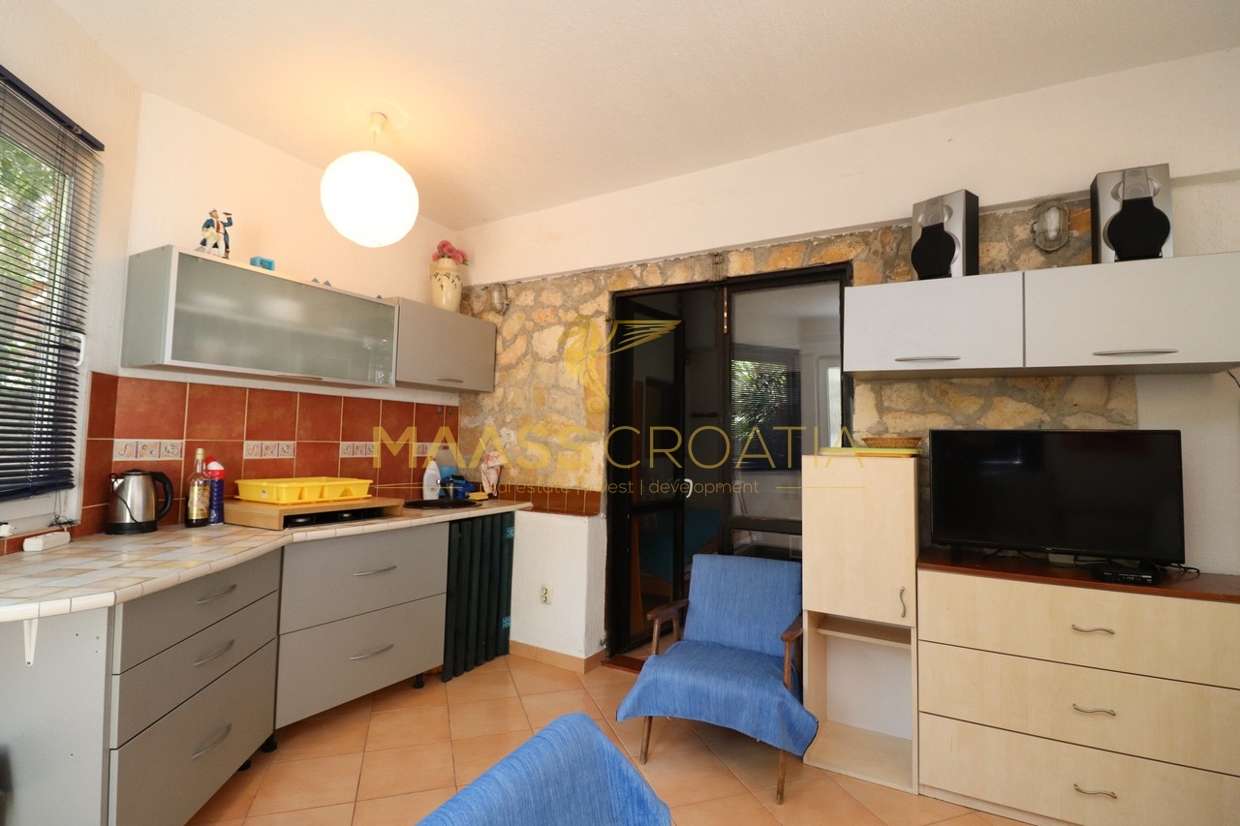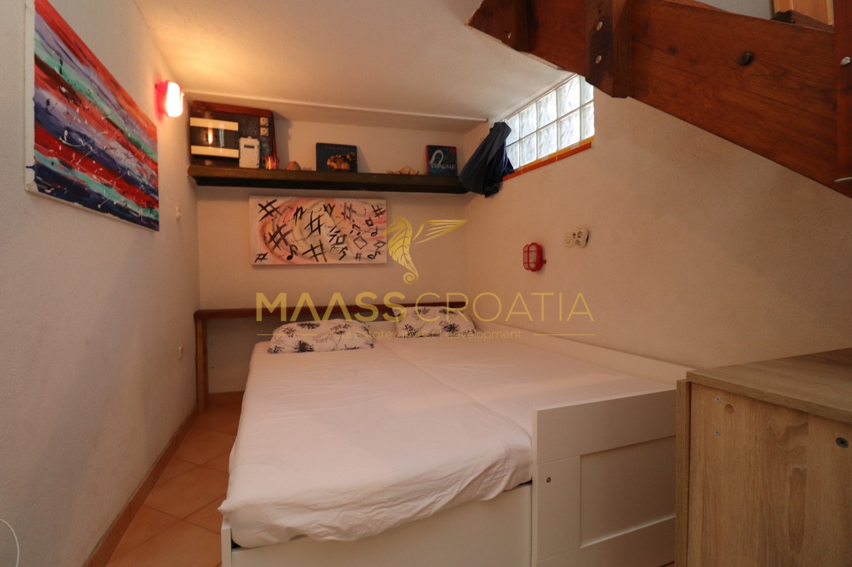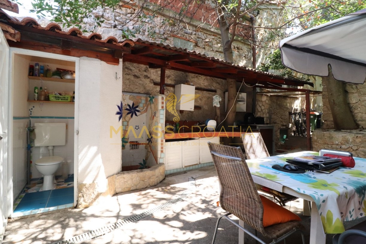 Murter – gammelt landsbycentrum: Et et-plans hus med kælder og galleri er til salg her.