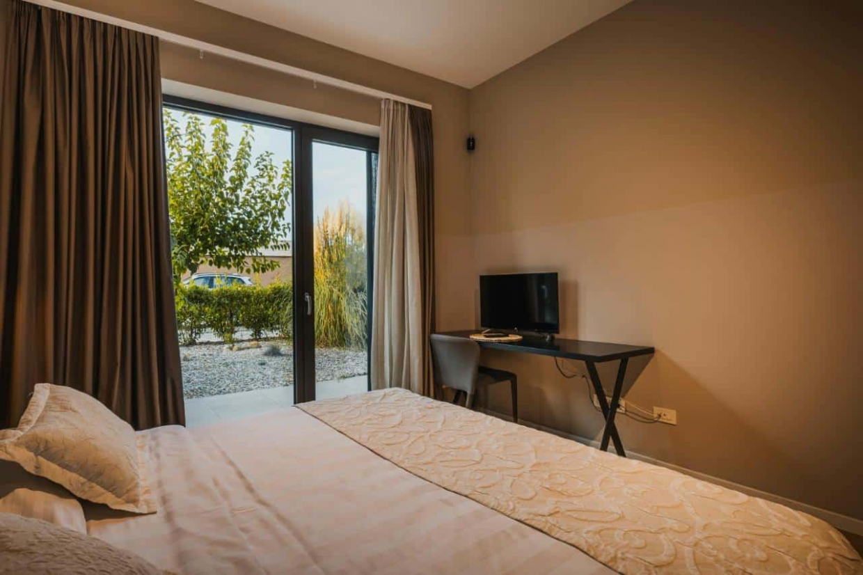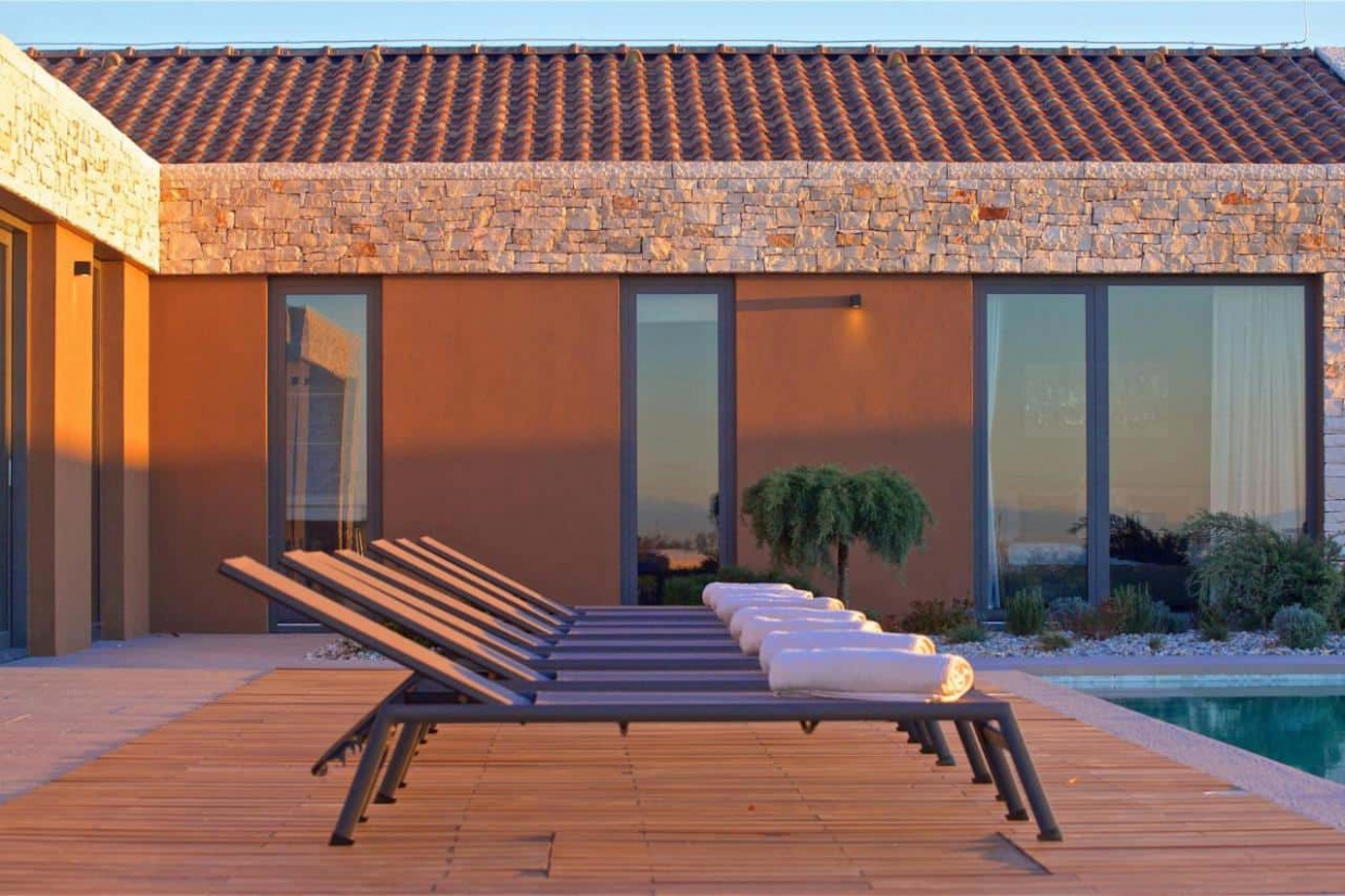 Stone Mansions ydre er lige så imponerende med en rummelig terrasse, der er perfekt til spisning og underholdning under åben himmel.