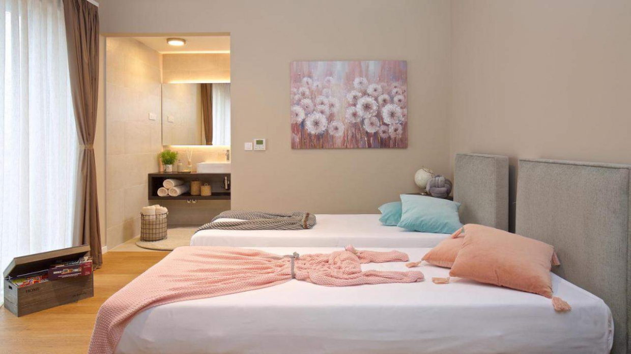 Hvert soveværelse er smukt designet og indrettet, hvilket sikrer beboerne et komfortabelt og stilfuldt opholdsrum.
