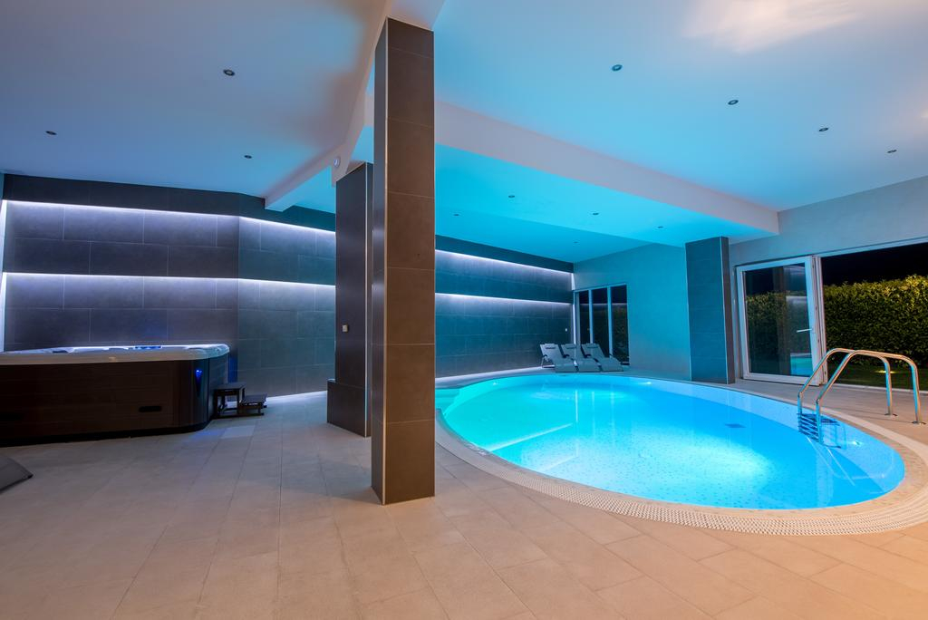 Dette 3-etagers hus med en stor have og rigelig parkering vil overgå alle dine forventninger. Det kan prale af 5 soveværelser og 7 badeværelser og ligger 10 km fra byens centrum og 7 km fra den nærmeste strand. En stor swimmingpool er placeret på den største terrasse i stueetagen, som er forbundet med en terrasse med en overdækket pergola og en stengrill – et sandt midtpunkt for underholdning. Poolen er placeret bag huset. Der kan nydes en betagende havudsigt fra forhaven, de to balkoner fra stuen og soveværelserne på de øverste etager. Der er også en indendørs swimmingpool og endda en legeplads. Derudover er der en sauna og et spabad. For dem, der søger ekstra underholdning, er der også et indbygget fitnesscenter og et billardrum.