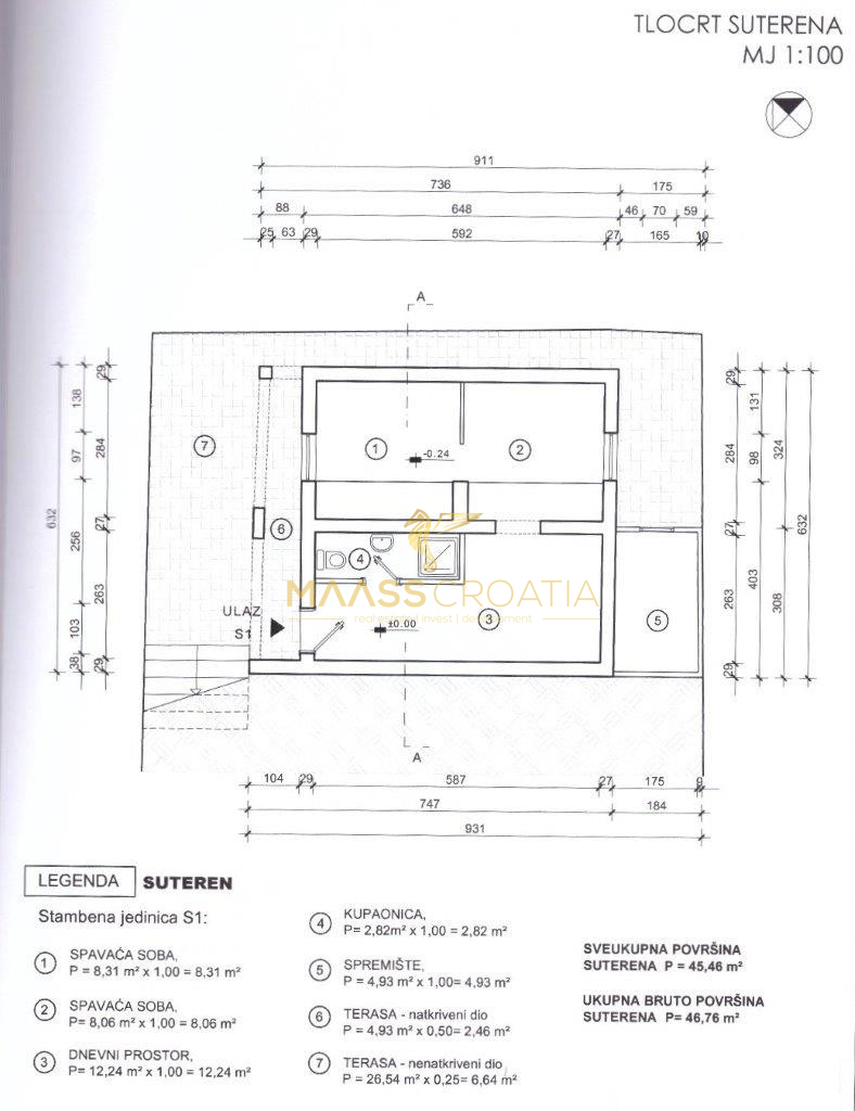 Im Souterrain befinden sich eine 45,26 m² große Wohneinheit mit Wohnzimmer, zwei Schlafzimmern, Bad, Abstellraum und eine Terrasse. Denkbar als separate Einlieger- oder Gästewohnung oder auch als Unterkunft zum Vermieten geeignet.