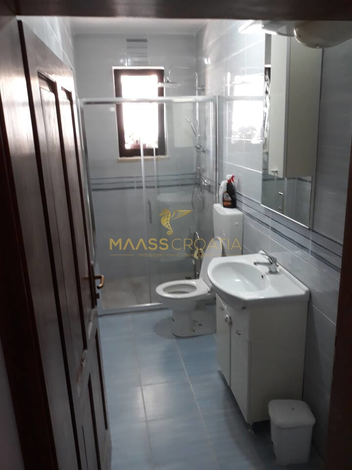 Lejligheden på 100 m² blev forberedt til senere ombygning til 2 separate lejligheder (vandtilslutning og kloaksystem til kommende bad/toilet blev lagt i afretningslag), så den blev ombygget, som på øverste etage, med skillevæg og de nødvendige installationer kan være.