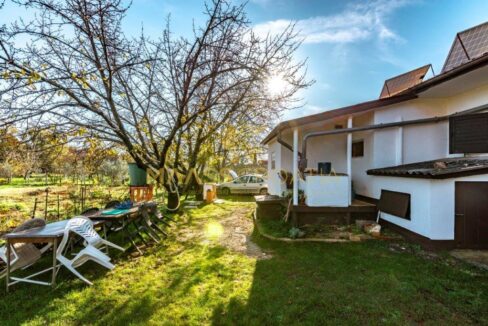 Grunden omkring husene er fuldstændig indhegnet, velholdt, vedligeholdt og smukt anlagt i olivenlund, frugthave, have og blomsterhave.