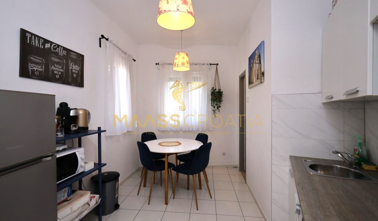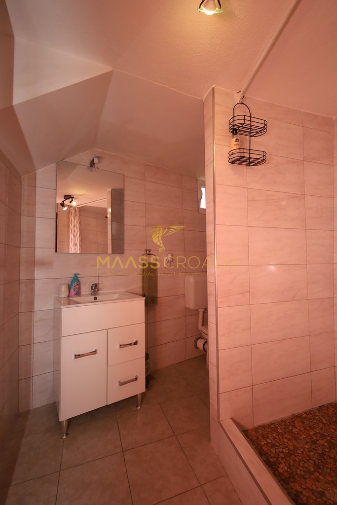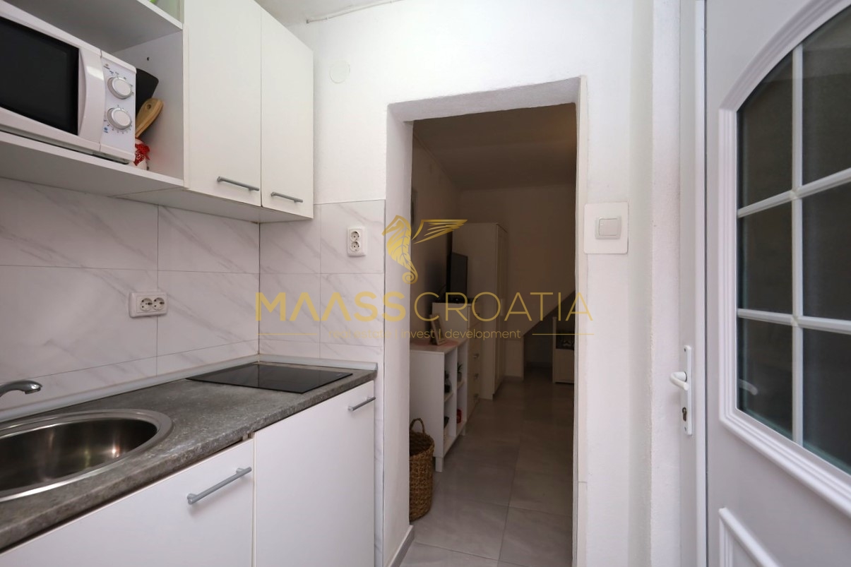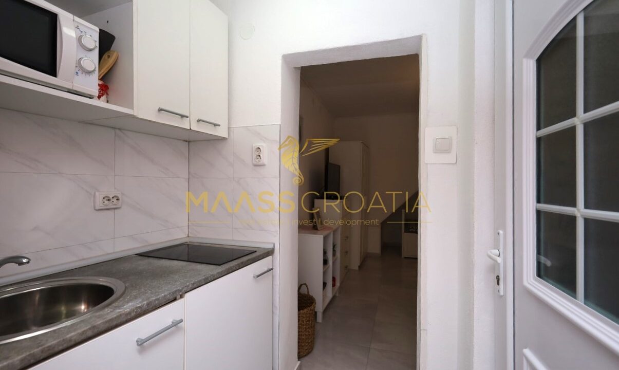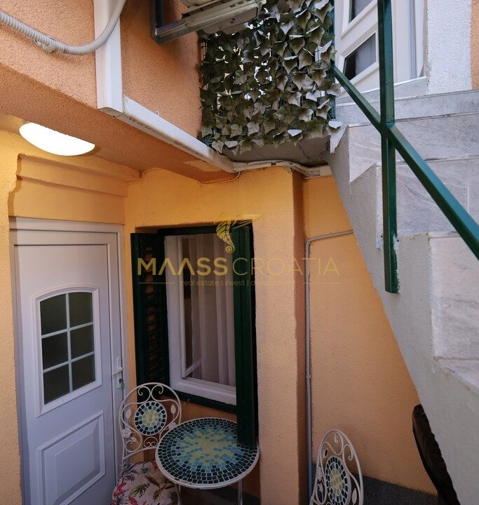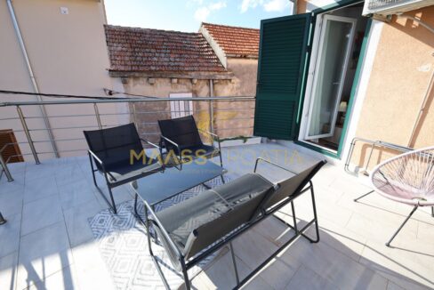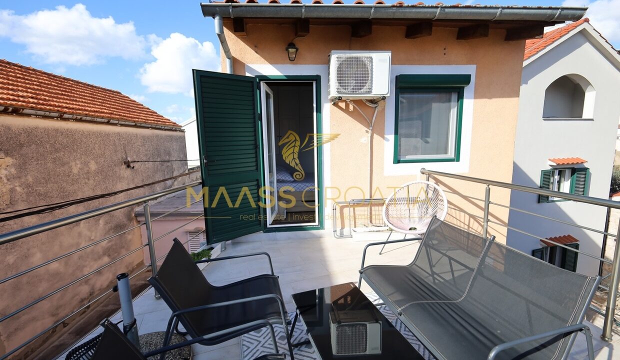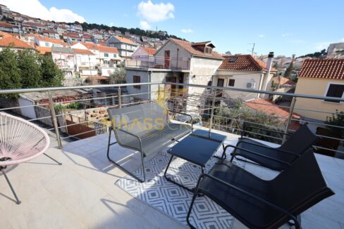 Renoveret rækkehus med et samlet boligareal på 63,77 m2 og en 10 m2 terrasse med en fantastisk udsigt over Šibenik fæstningerne.