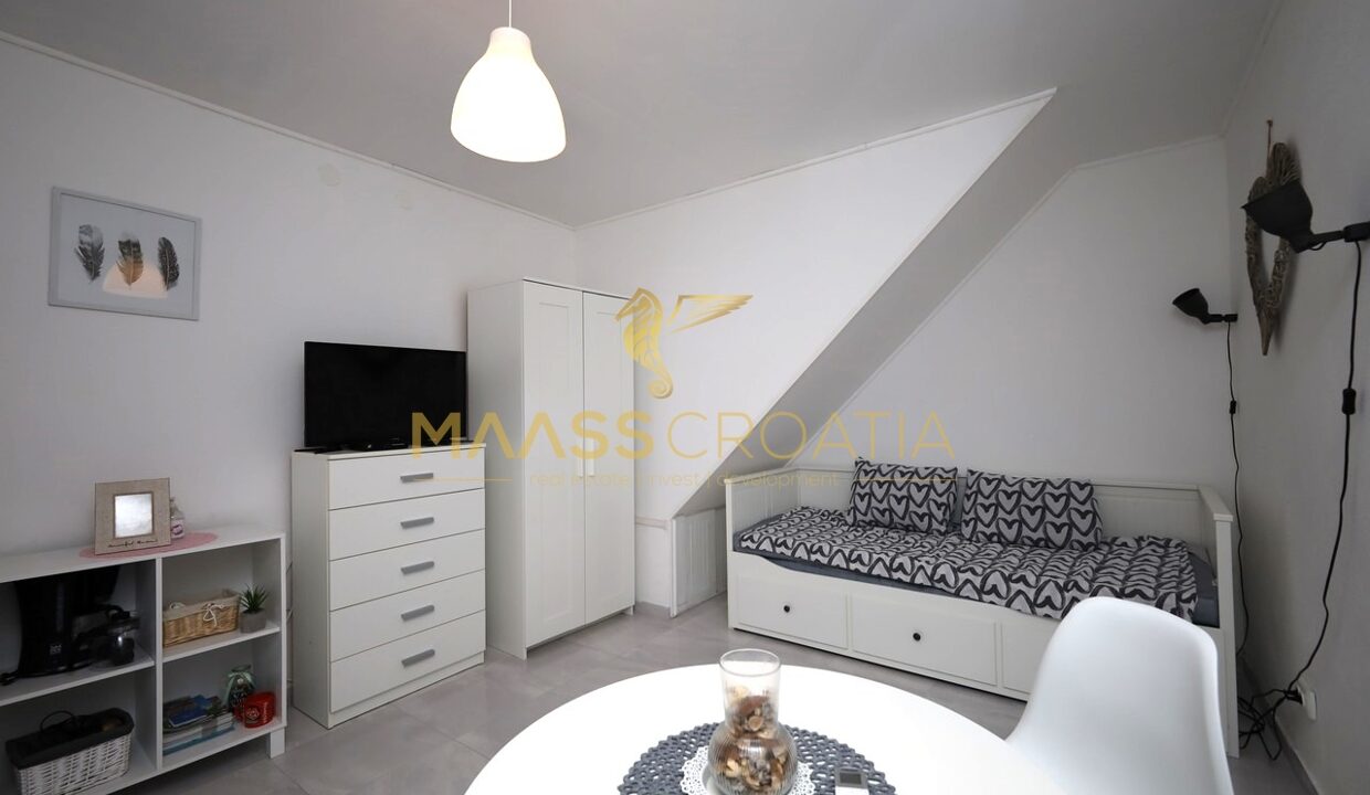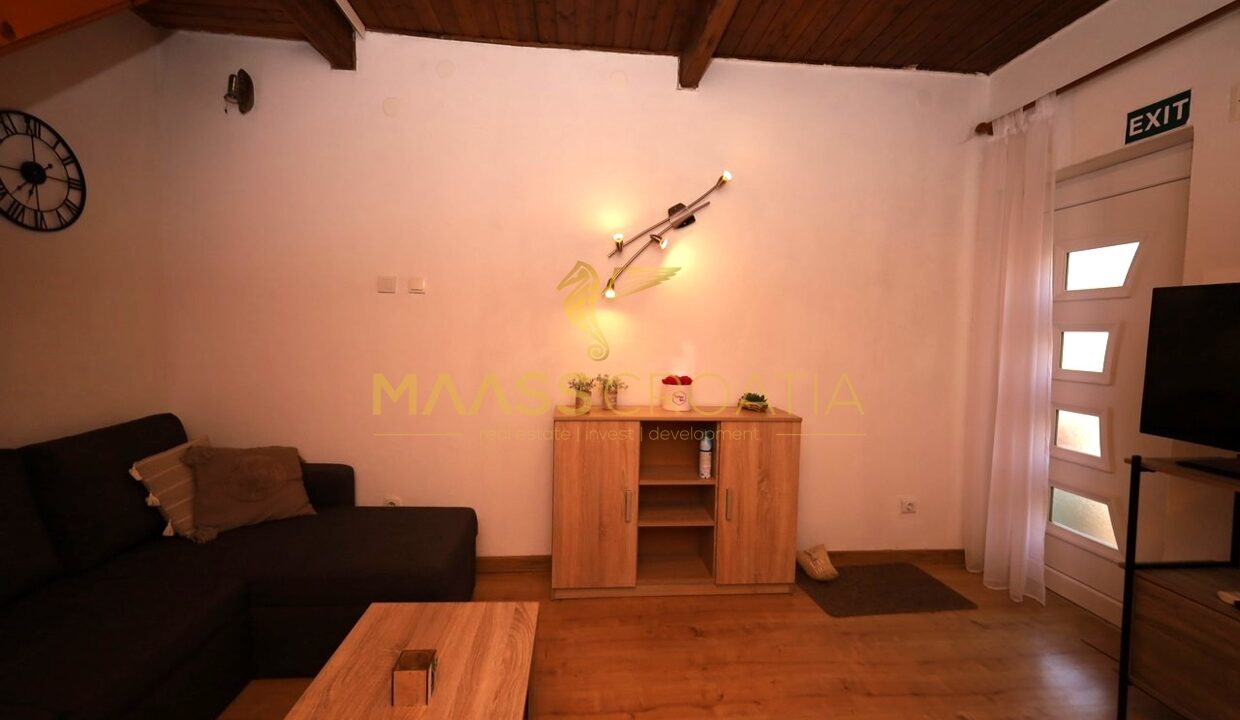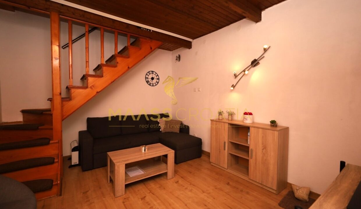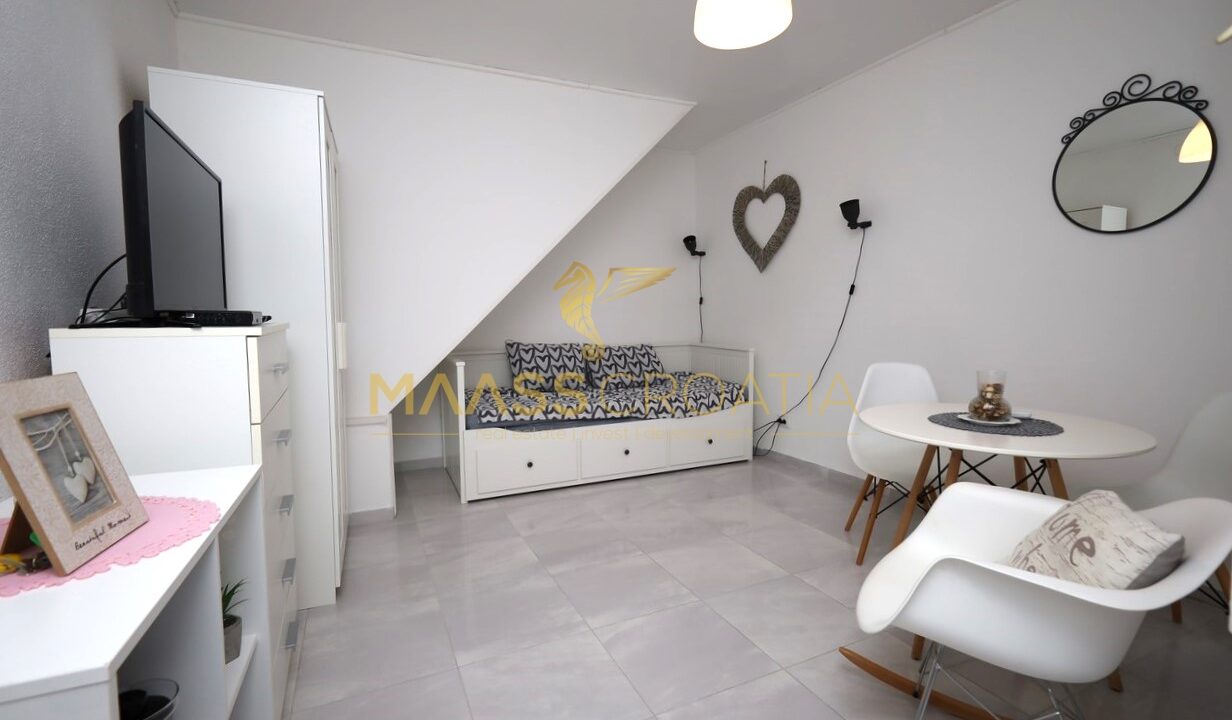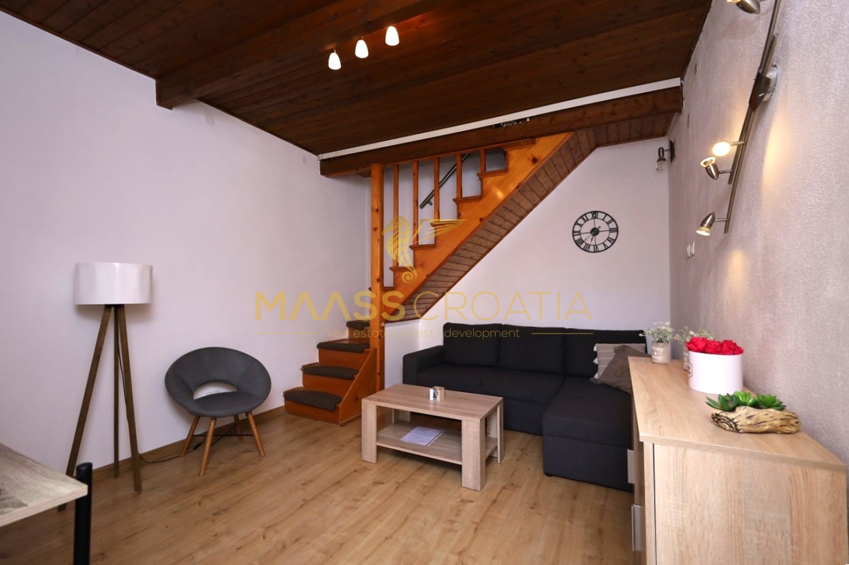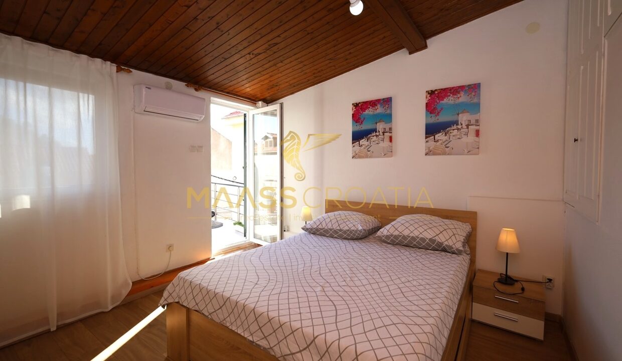Renoveret rækkehus med et samlet boligareal på 63,77 m2 og en 10 m2 terrasse med en fantastisk udsigt over Šibenik fæstningerne.