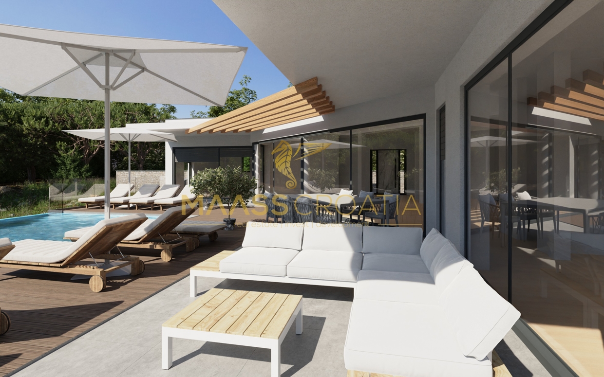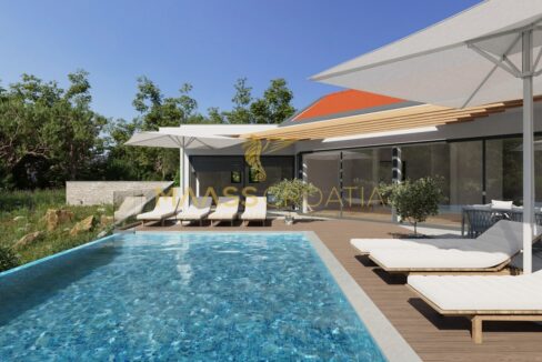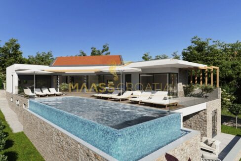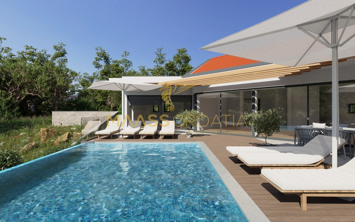 Luksusvillaen ligger nær Šibenik, i første række til havet, med indendørs og udendørs pool, fuldt møbleret og...