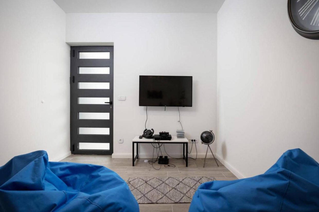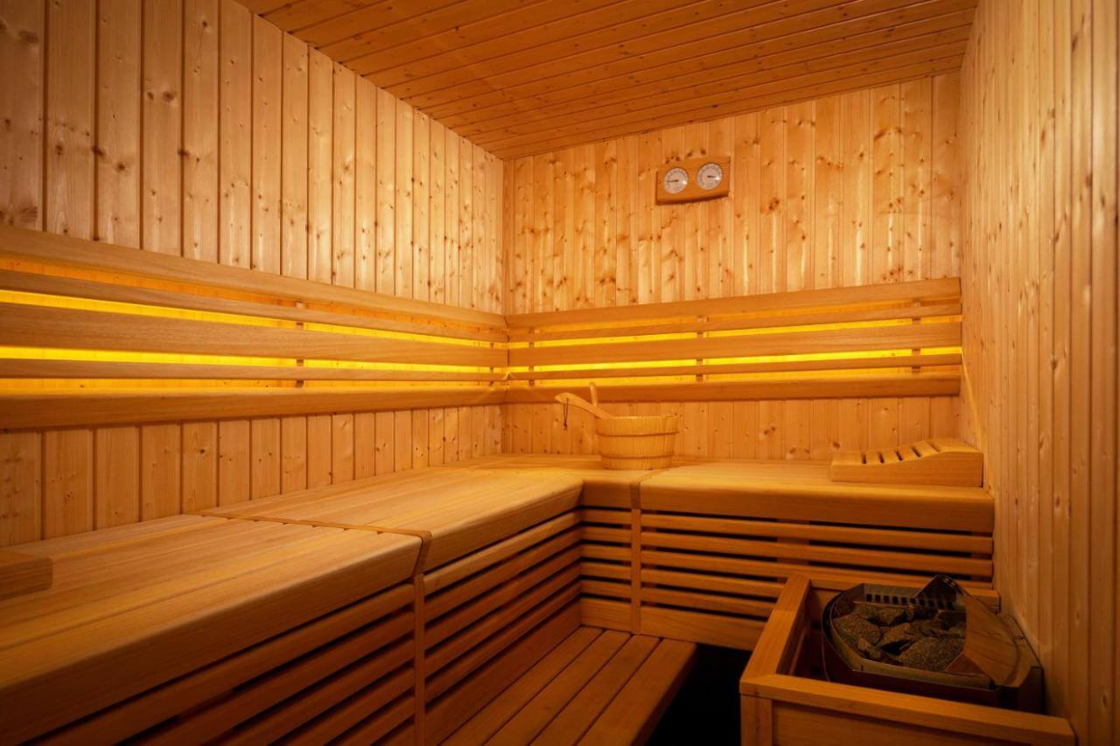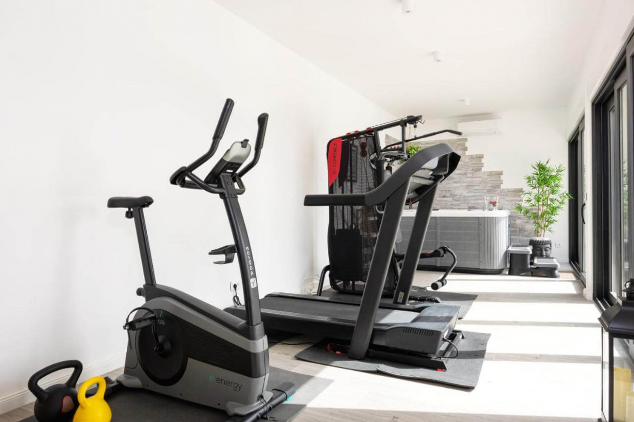 Aircondition, fitnesscenter, sauna, kameraer, gårdhave, legeplads, have