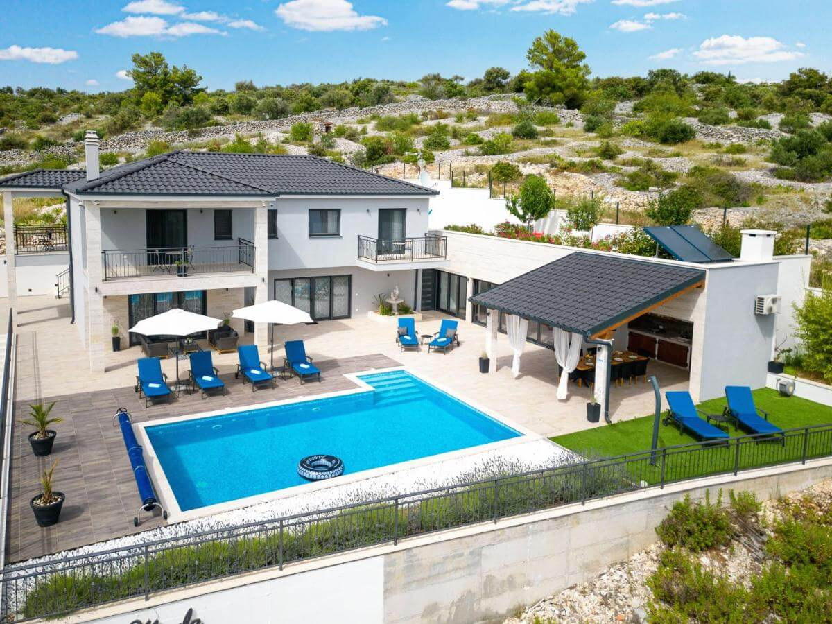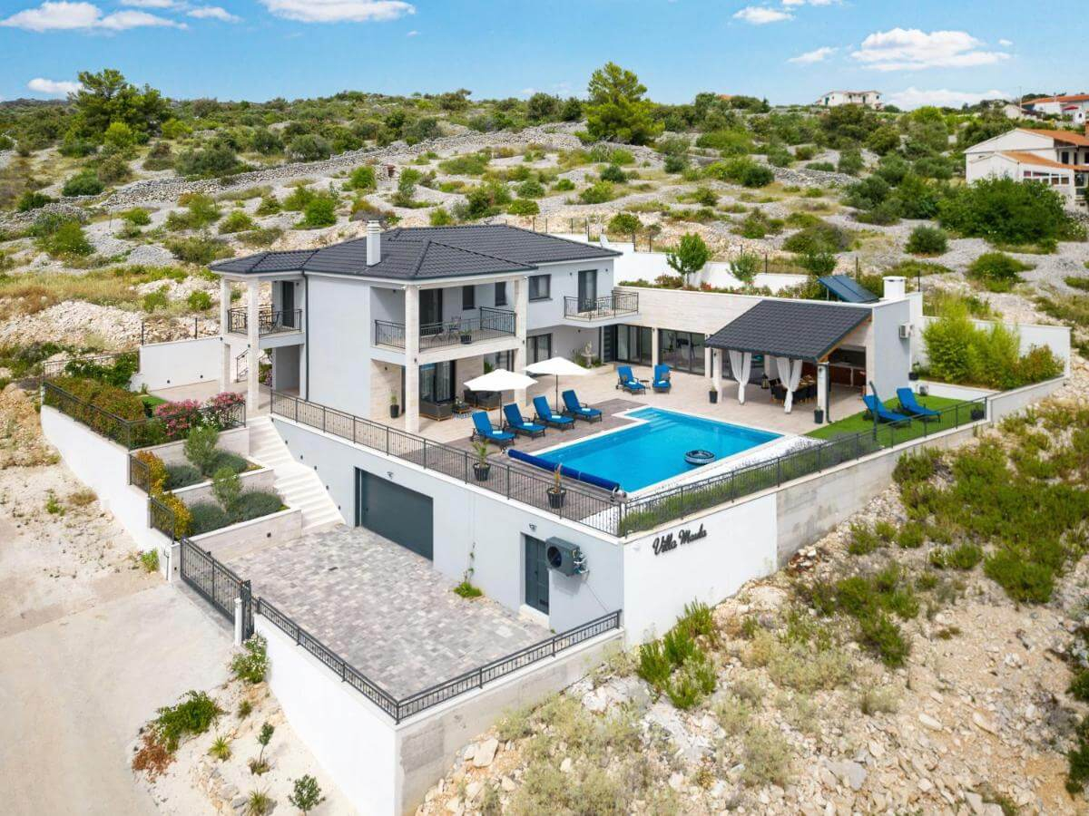 Beliggenhed: Øen Hvar Strand: 700 m Indvendigt areal: 300 m² Grundstørrelse: 8.542 m² Sten- og trækonstruktion...