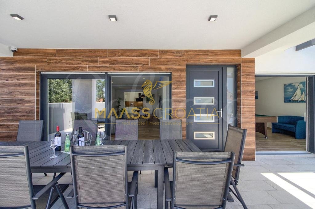 Denne moderne villa er beliggende nær byen Porec med et boligareal på 203 m2 og en grund på 3790 m2. I villaens...