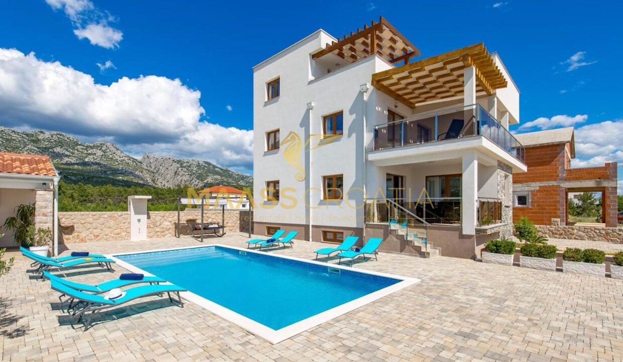 Denne unikke, moderne luksusvilla har fundet sin plads i den fredelige lille by Debeljak, tæt på Zadar. Den er...